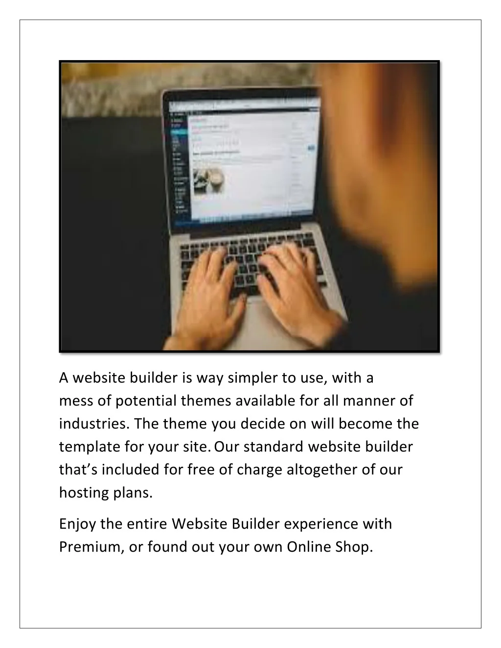 A website builder is way simpler to use, with a mess of potential themes available for all manner of industries. The theme you decide on will become the template for your site.Our standard website builder that’s included for free of charge altogether of our hosting plans. Enjoy the entire Website Builder experience with Premium, or found out your own Online Shop.