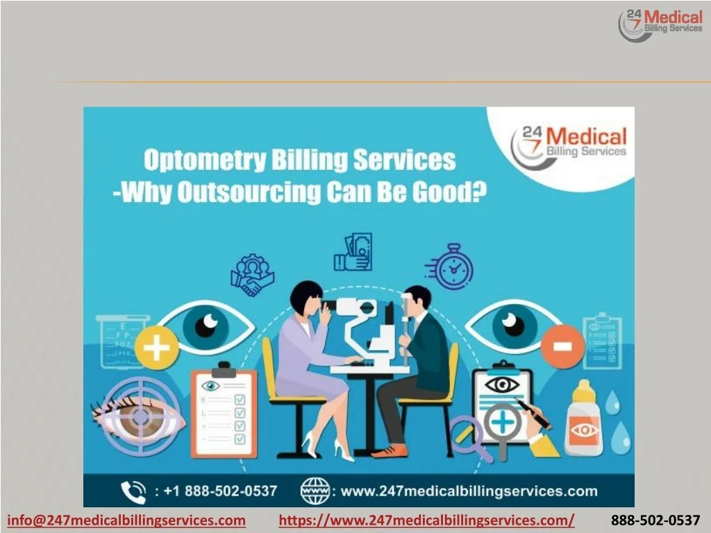 Conclusion Outsourcing your optometry medical billing can save you huge time, money and improves your quality of treatment and satisfaction with your patients, leading to consistency in revenue generation. At 24/7 Medical Billing Services, we provide you a dedicated billing team with whom you can communicate directly and know about your client accounts and status of pending ARs. To do the best thing, you should always run faster in the race. Outsourcing can do wonders to your optometry billing if you do it at the right time. Call to 24/7 Medical Billing Services at +1-888-502-0537 for outsourcing advice from experts. Read more: info@247medicalbillingservices.comhttps://www.247medicalbillingservices.com/888-502-0537
