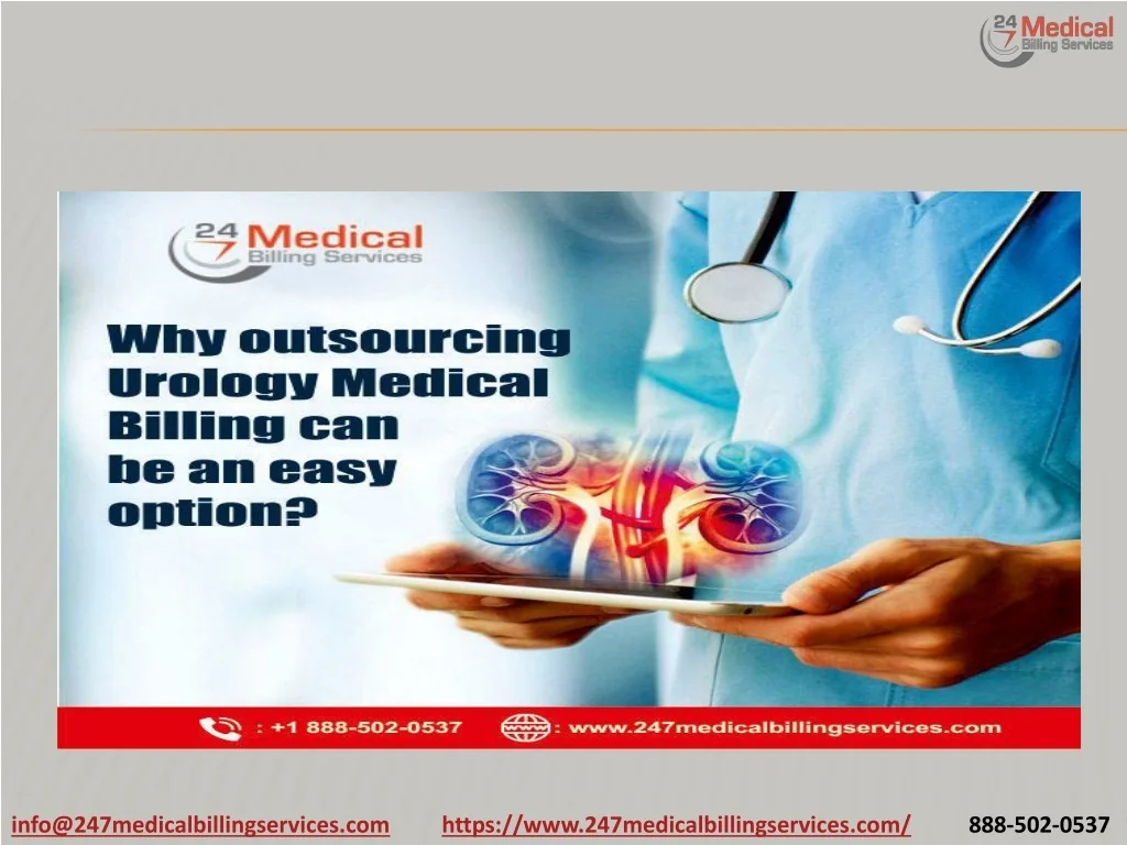 Conclusion Outsourcing your urology medical billing with highly efficient and experienced company such as 24/7 Medical Billing Services can bring you huge benefits and make your RCM steady with an easy and committed workflow. We help you enhance your claims adjustment rate between 12% and 15% and even more, considering your present performance, but will be much better than your previous average rate. We also help you keep your ARs under control with continuous and effective follow-ups with insurer, ensuring consistent revenue flow. info@247medicalbillingservices.comhttps://www.247medicalbillingservices.com/888-502-0537