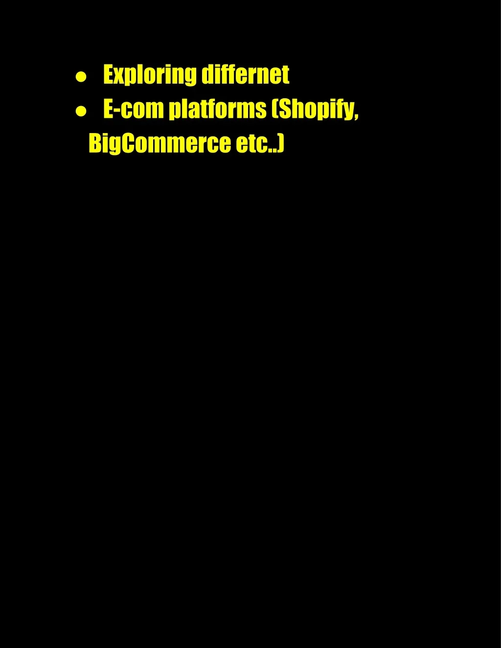 ● Exploring differnet ● E-com platforms (Shopify, ● BigCommerce etc..)