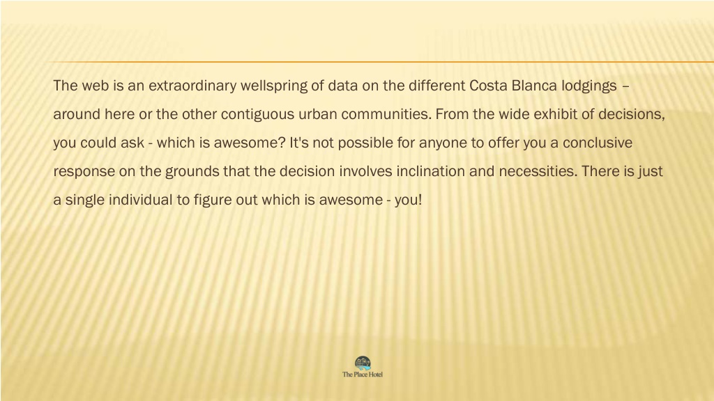 The web is an extraordinary wellspring of data on the different Costa Blanca lodgings – around here or the other contiguous urban communities. From the wide exhibit of decisions, you could ask - which is awesome? It's not possible for anyone to offer you a conclusive response on the grounds that the decision involves inclination and necessities. There is just a single individual to figure out which is awesome - you!