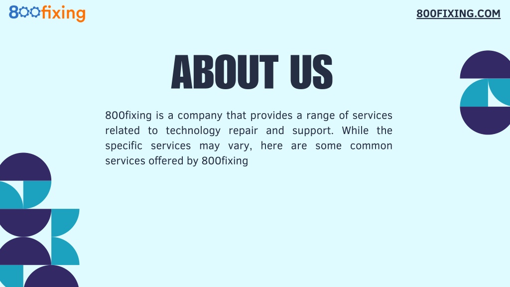800FIXING.COM ABOUT US 800fixing is a company that provides a range of services related to technology repair and support. While the specific services may vary, here are some common services offered by 800fixing
