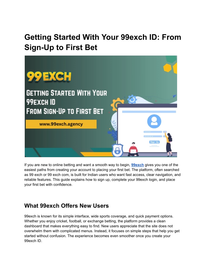 1. Getting Started With Your 99exch ID: From Sign-Up to First Bet If you are new to online betting and want a smooth way to begin, 99exch gives you one of the easiest paths from creating your account to placing your first bet. The platform, often searched as 99 exch or 99 exch com, is built for Indian users who want fast access, clear navigation, and reliable features. This guide explains how to sign up, complete your 99exch login, and place your first bet with confidence. What 99exch Offers New Users 99exch is known for its simple interface, wide sports coverage, and quick payment options. Whether you enjoy cricket, football, or exchange betting, the platform provides a clean dashboard that makes everything easy to find. New users appreciate that the site does not overwhelm them with complicated menus. Instead, it focuses on simple steps that help you get started without confusion. The experience becomes even smoother once you create your 99exch ID.