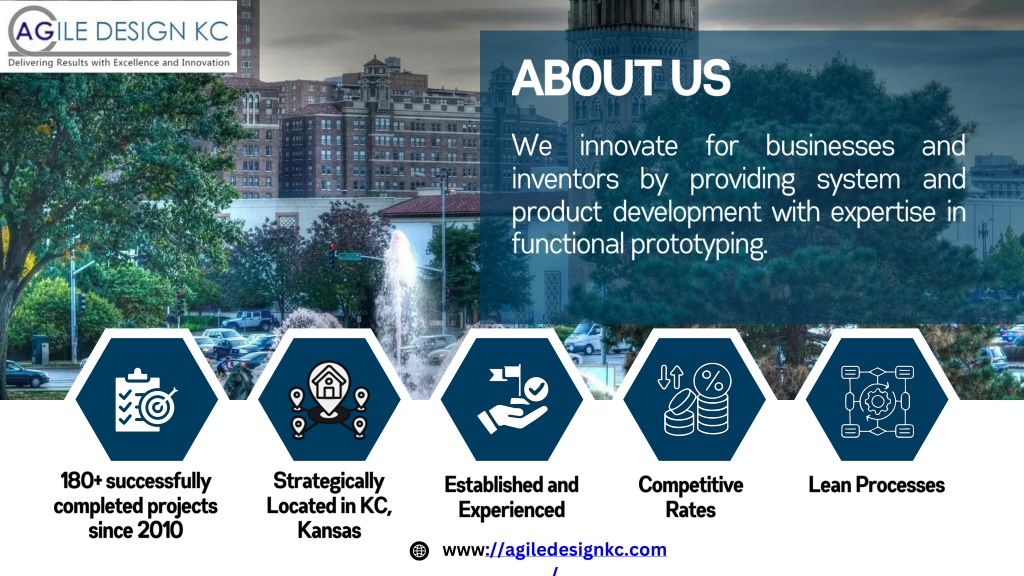 ABOUT US We innovate for businesses and inventors by providing system and product development with expertise in functional prototyping. 180+ successfully completed projects since 2010 Strategically Located in KC, Kansas Established and Experienced Competitive Rates Lean Processes www://agiledesignkc.com/