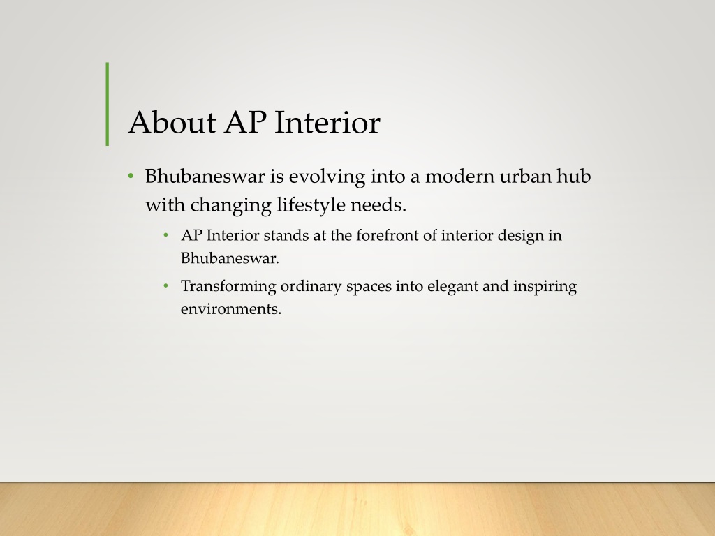 About AP Interior • Bhubaneswar is evolving into a modern urban hub with changing lifestyle needs. • AP Interior stands at the forefront of interior design in Bhubaneswar. • Transforming ordinary spaces into elegant and inspiring environments.
