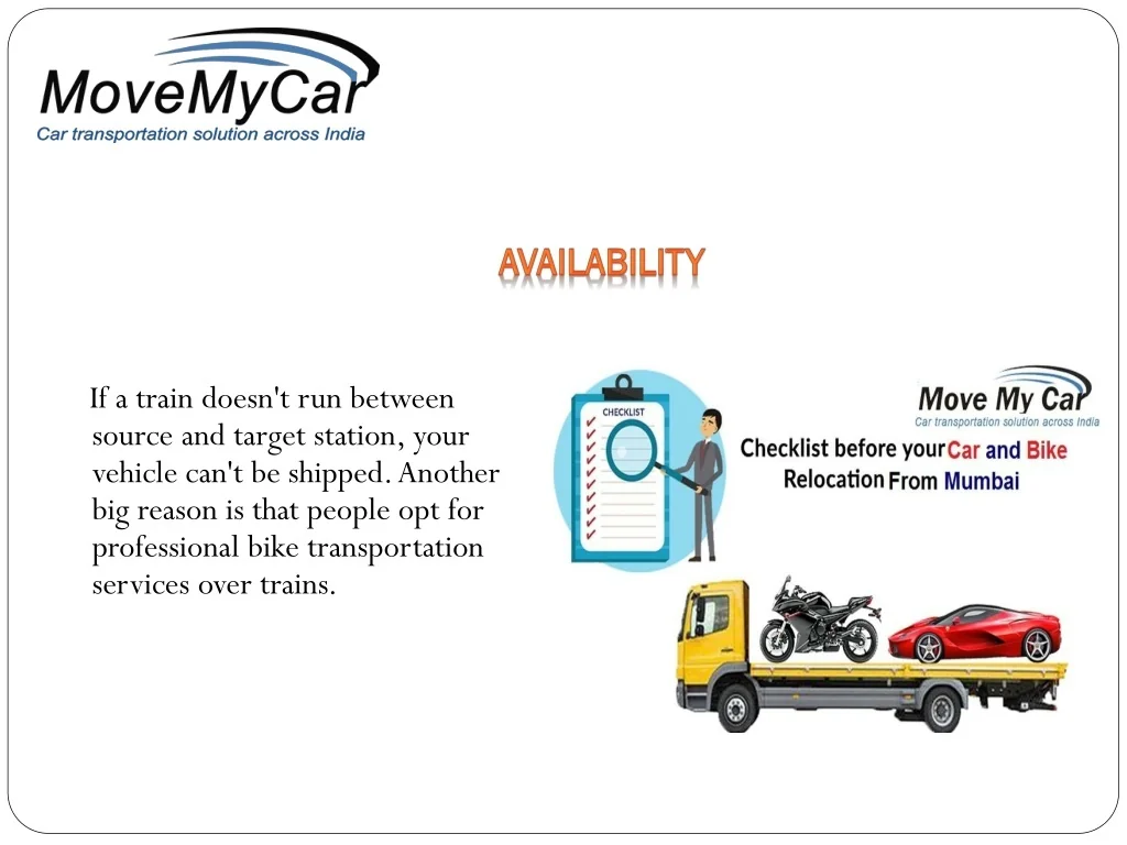 Availability If a train doesn't run between source and target station, your vehicle can't be shipped. Another big reason is that people opt for professional bike transportation services over trains.