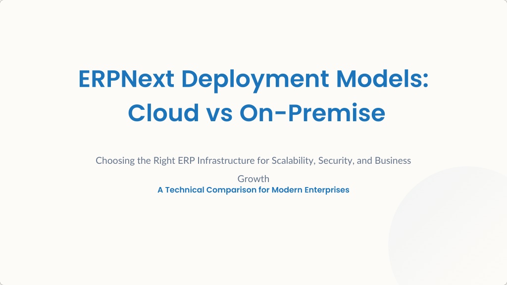 ERPNext Deployment Models: Cloud vs On-Premise Choosing the Right ERP Infrastructure for Scalability, Security, and Business Growth A Technical Comparison for Modern Enterprises