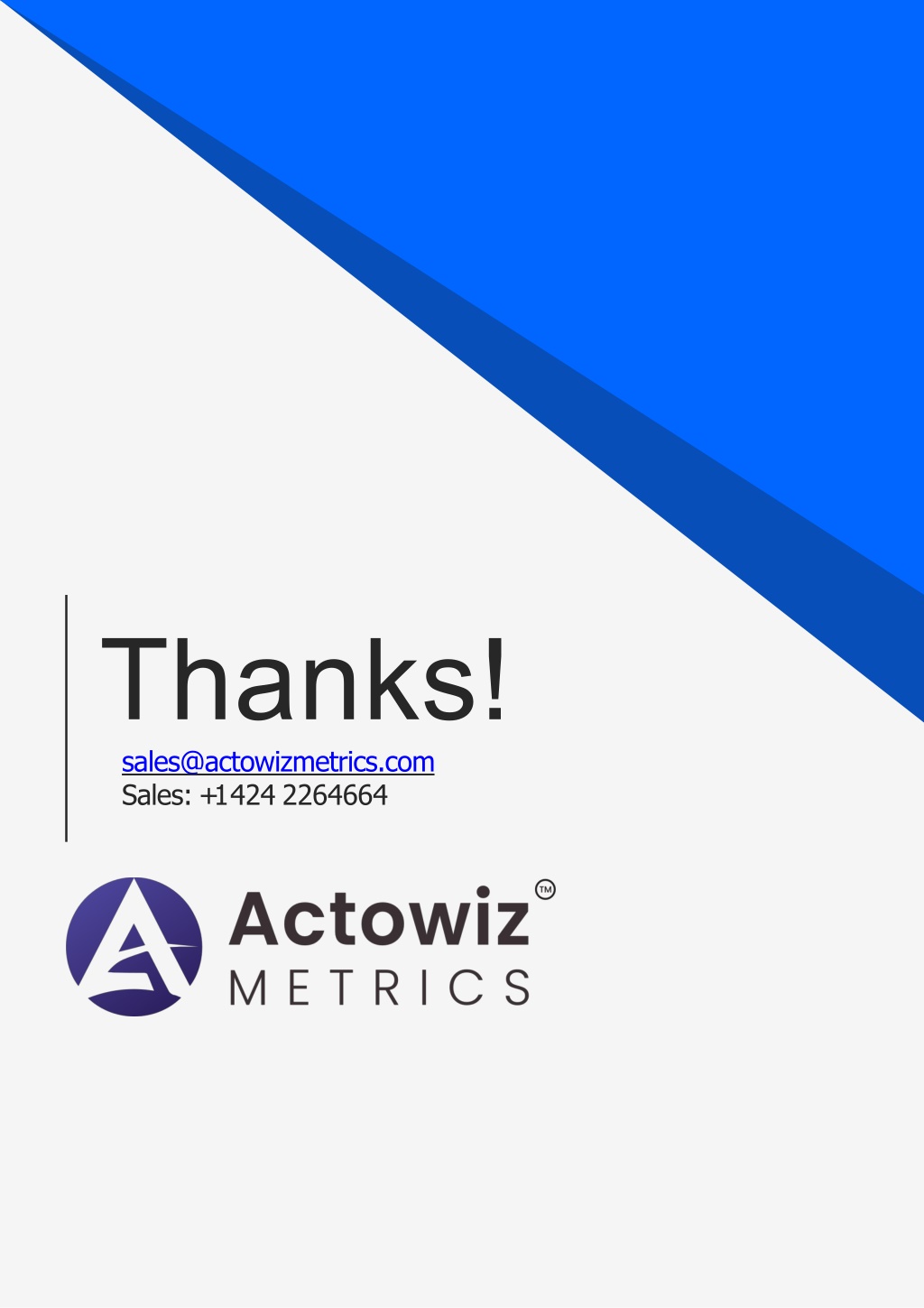 9. Thanks! sales@actowizmetrics.com Sales: +1 424 2264664 CREDITS: This presentation template was created by Slidesgo, and includes icons by Flaticon, and infographics & images by Freepik