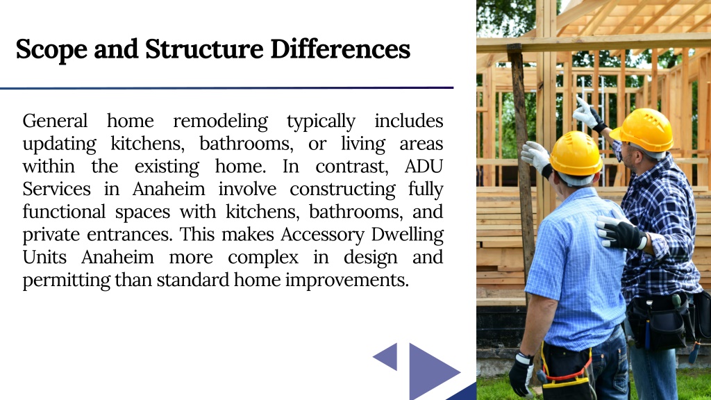 Scope and Structure Differences General home remodeling typically includes updating kitchens, bathrooms, or living areas within the existing home. In contrast, ADU Services in Anaheim involve constructing fully functional spaces with kitchens, bathrooms, and private entrances. This makes Accessory Dwelling Units Anaheim more complex in design and permitting than standard home improvements.