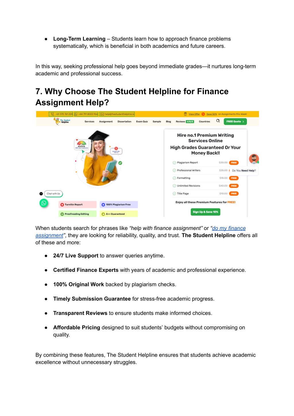 Get expert finance assignment help from The Student Helpline with 24/7 support, plagiarism-free content, timely delivery & trusted academic guidance.