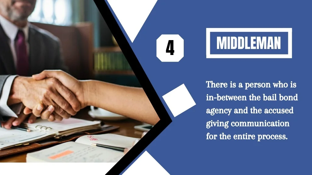 MIDDLEMAN 4 There is a person who is in-between the bail bond agency and the accused giving communication for the entire process.
