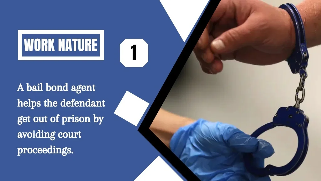 WORK NATURE 1 A bail bond agent helps the defendant get out of prison by avoiding court proceedings.