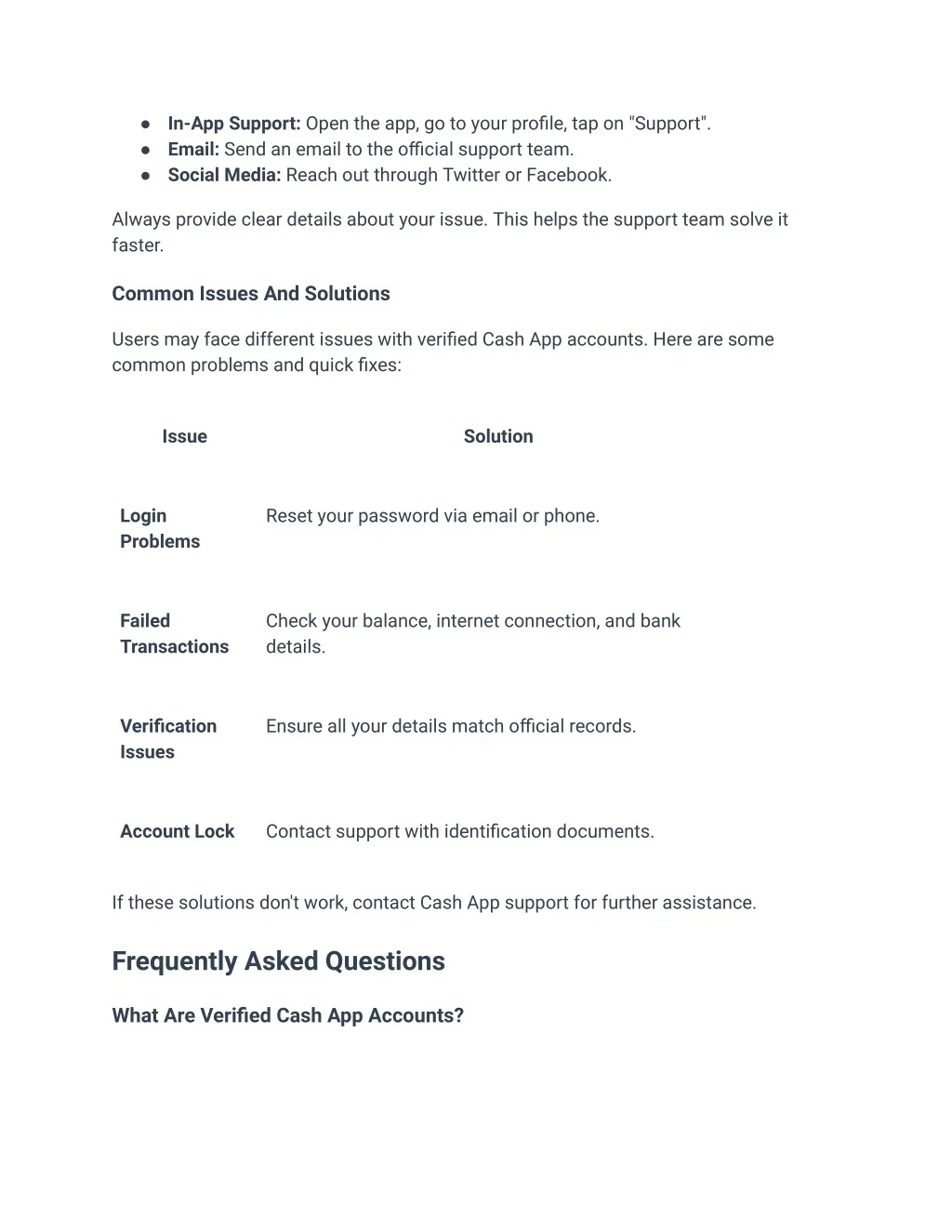 ● In-App Support: Open the app, go to your profile, tap on "Support". ● Email: Send an email to the official support team. ● Social Media: Reach out through Twitter or Facebook. Always provide clear details about your issue. This helps the support team solve it faster. Common Issues And Solutions Users may face different issues with verified Cash App accounts. Here are some common problems and quick fixes: Issue Solution Login Problems Reset your password via email or phone. Failed Transactions Check your balance, internet connection, and bank details. Verification Issues Ensure all your details match official records. Account Lock Contact support with identification documents. If these solutions don't work, contact Cash App support for further assistance. Frequently Asked Questions What Are Verified Cash App Accounts?