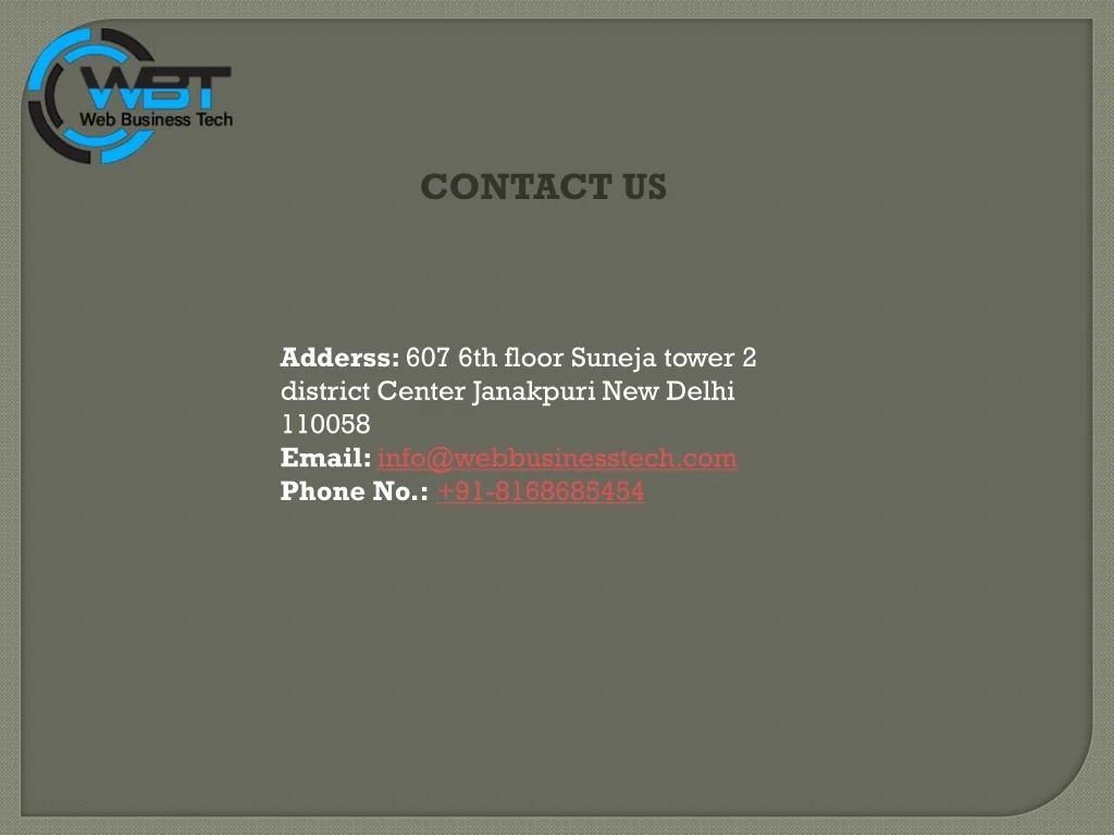 CONTACT US Adderss: 607 6th floor Suneja tower 2 district Center Janakpuri New Delhi 110058 Email: info@webbusinesstech.com Phone No.:+91-8168685454
