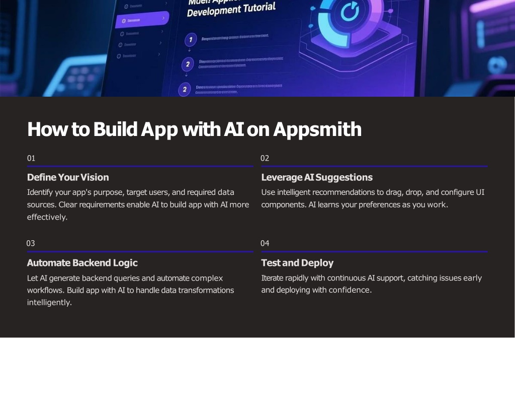 1. BuildAppwithAI:Unlocking RapidDevelopmentwith Appsmith Discoverhowartificialintelligenceis revolutionisingapplication development,empoweringteamstobuildpowerfultoolsfasterthan ever before.