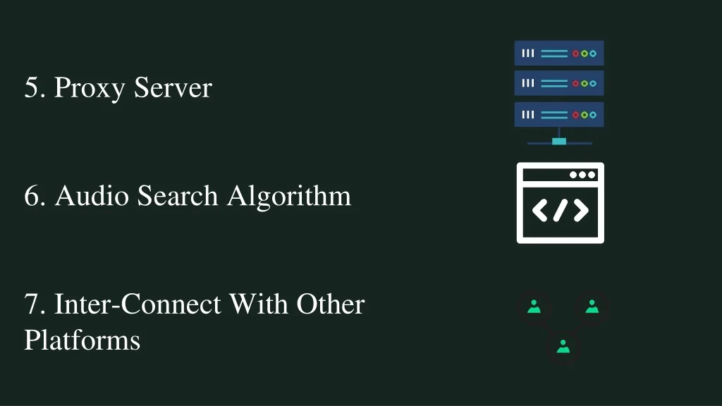 5. Proxy Server6. Audio Search Algorithm7. Inter-Connect With Other Platforms