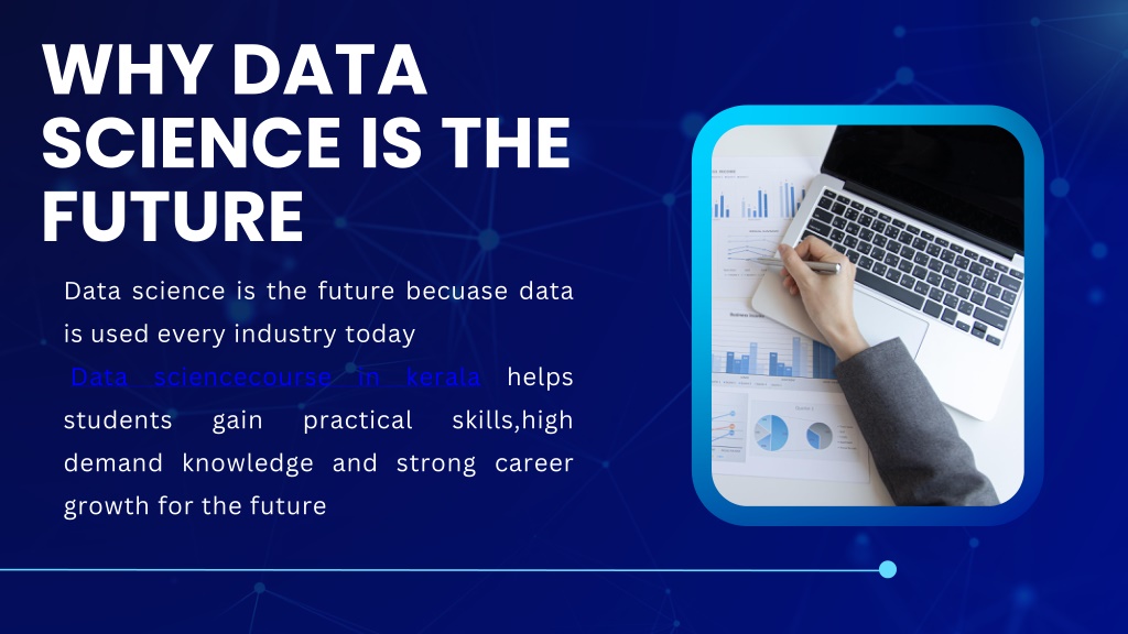 3. WHY DATA SCIENCE IS THE FUTURE Data science is the future becuase data is used every industry today Data sciencecourse in kerala helps students gain practical skills,high demand knowledge and strong career growth for the future