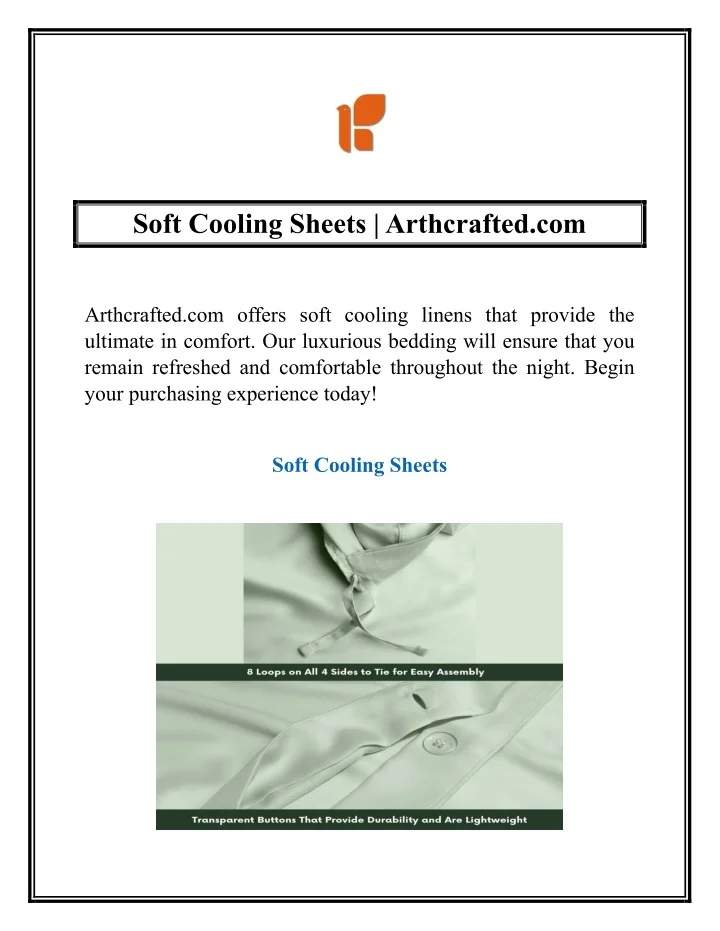Soft Cooling Sheets | Arthcrafted.com Arthcrafted.com offers soft cooling linens that provide the ultimate in comfort. Our luxurious bedding will ensure that you remain refreshed and comfortable throughout the night. Begin your purchasing experience today! Soft Cooling Sheets