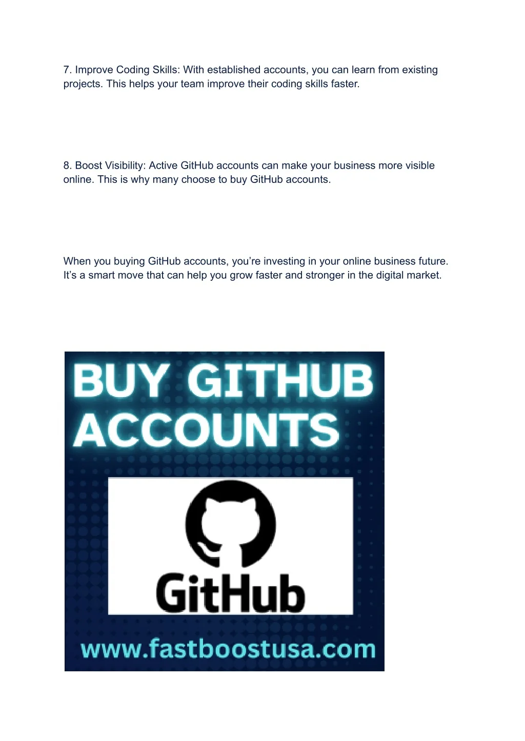 Buy GitHub Accounts<br>https://fastboostusa.com/product/buy-github-accounts/<br>Contact us now for details 24/7-hours contact<br>Email: fastboostusa42@gmail.com<br>Telegram: @fastboostusa<br>Skype: fastboostusa<br>WhatsApp: 1 u202a(269) 220-9243<br>#github #javascript #programming #coding #python #html #programmer #developer #linux #java #css #code #git <br>#computerscience #coder #hacking #stackoverflow #hacker #webdevelopment #kalilinux #softwaredeveloper #technology <br>#webdeveloper #programmingmemes #php #pythonprogramming #machinelearning #daysofcode #opensource #coders #codinglife <br>#reactjs #devops #software #webdev
