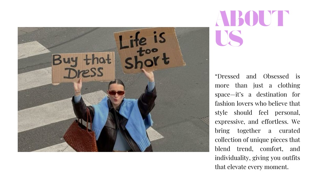 3. ABOUT US • “Dressed and Obsessed is more than just a clothing space—it’s a destination for fashion lovers who believe that style should feel personal, expressive, and effortless. We bring together a curated collection of unique pieces that blend trend, comfort, and individuality, giving you outfits that elevate every moment.