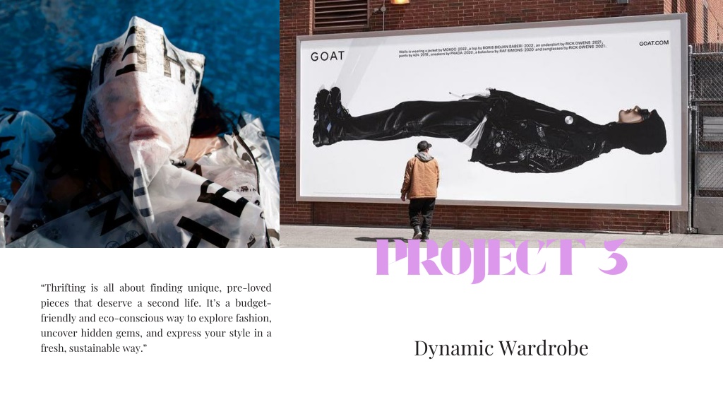 8. PROJECT 3 • “Thrifting is all about finding unique, pre-loved pieces that deserve a second life. It’s a budget-friendly and eco-conscious way to explore fashion, uncover hidden gems, and express your style in a fresh, sustainable way.” Dynamic Wardrobe