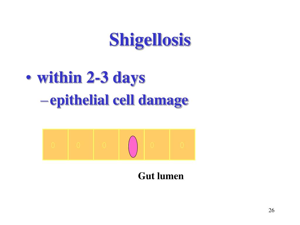 Shigellosis • within 2-3 days • epithelial cell damage Gut lumen