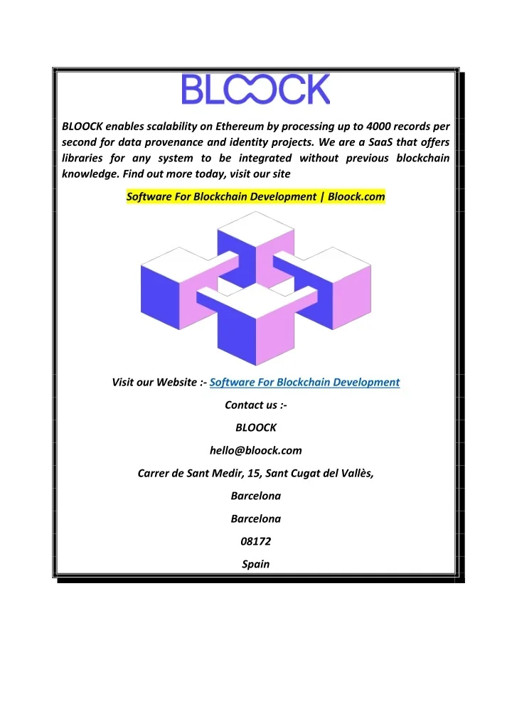 BLOOCK enables scalability on Ethereum by processing up to 4000 records per second for data provenance and identity projects. We are a SaaS that offers libraries for any system to be integrated without previous blockchain knowledge. Find out more today, visit our site