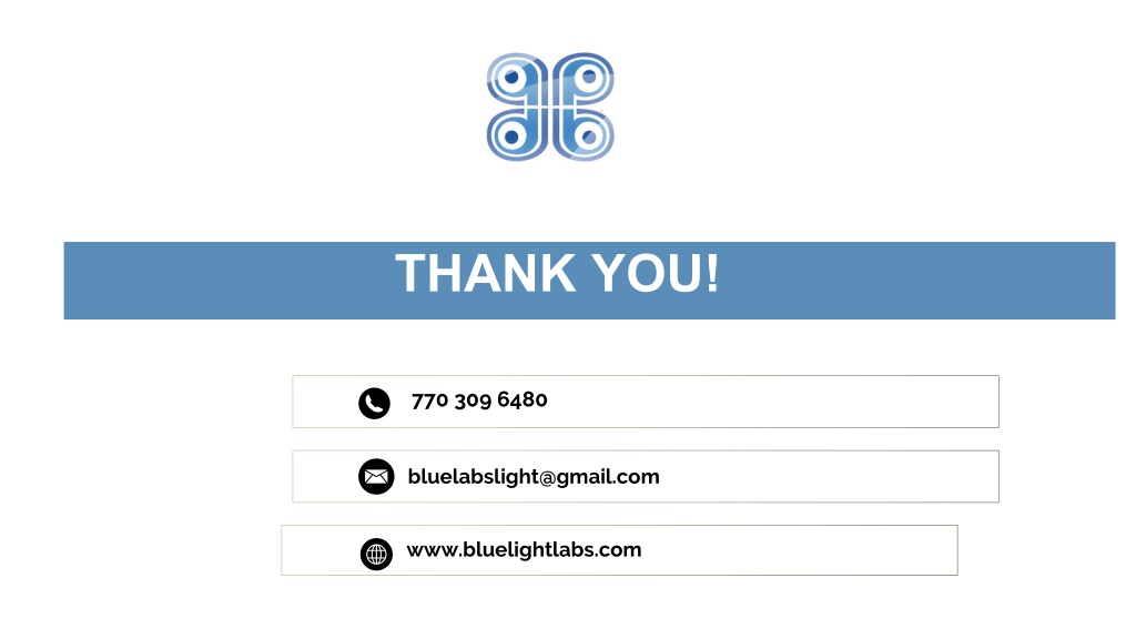 7. bluelabslight@gmail.com THANK YOU! 770 309 6480 www.bluelightlabs.com