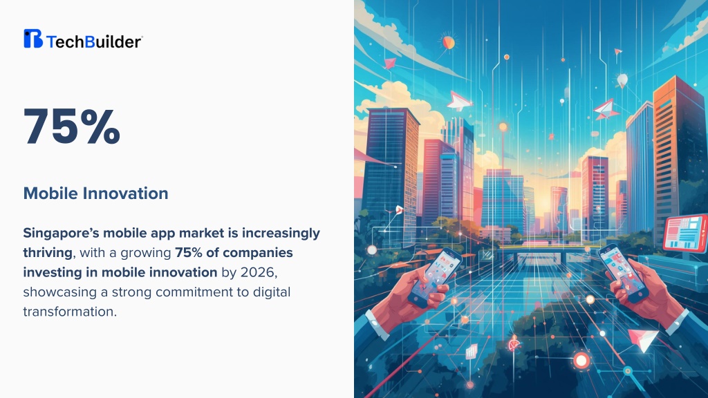 75% Mobile Innovation Singapore’s mobile app market is increasingly thriving, with a growing 75% of companies investing in mobile innovation by 2026, showcasing a strong commitment to digital transformation.