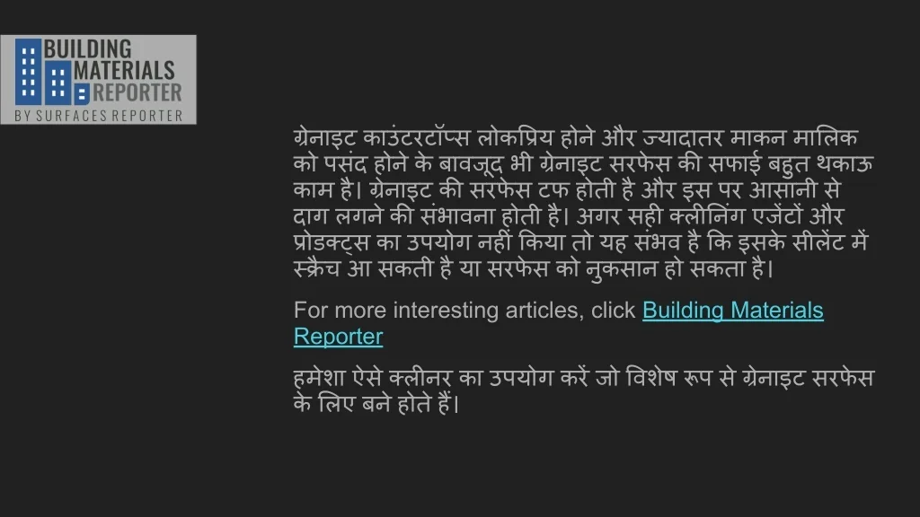 ग्रेनाइटकाउंटरटॉप्सलोक?प्रयहोनेऔरज्यादातरमाकनमा?लकग्रेनाइटकाउंटरटॉप्सलोक?प्रयहोनेऔरज्यादातरमाकनमा?लक कोपसंदहोनेक ेबावजूदभीग्रेनाइटसरफ े सकीसफाईबहुतथकाऊ कामहै।ग्रेनाइटकीसरफ े सटफहोतीहैऔरइसपरआसानीसे दागलगनेकीसंभावनाहोतीहै।अगरसही?ली?नंगएजेंटोंऔर प्रोड?ट्सकाउपयोगनहीं?कयातोयहसंभवहै?कइसक ेसीलेंटमें स्क्र ै चआसकतीहैयासरफ े सकोनुकसानहोसकताहै। For more interesting articles, click Building Materials Reporter हमेशाऐसे?लीनरकाउपयोगकरेंजो?वशेषरूपसेग्रेनाइटसरफ े स क े?लएबनेहोतेहैं।