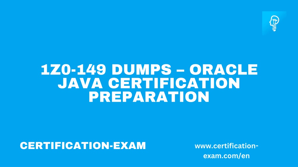 1Z0-149 DUMPS – ORACLE JAVA CERTIFICATION PREPARATION CERTIFICATION-EXAM www.certification-exam.com/en