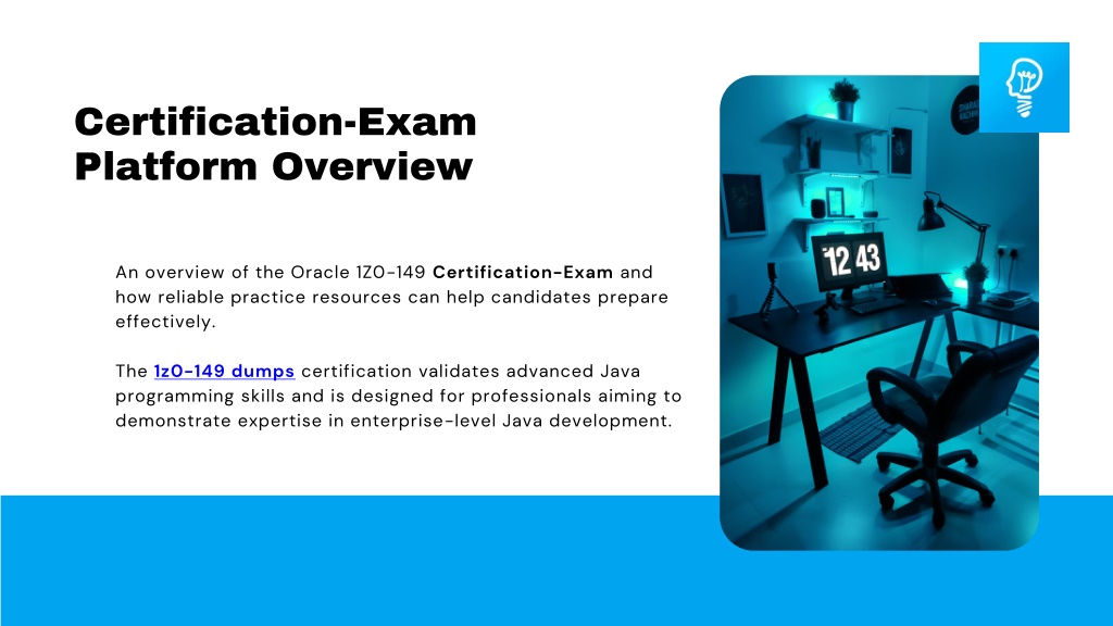 Certification-Exam Platform Overview An overview of the Oracle 1Z0-149 Certification-Exam and how reliable practice resources can help candidates prepare effectively. The 1z0-149 dumps certification validates advanced Java programming skills and is designed for professionals aiming to demonstrate expertise in enterprise-level Java development.