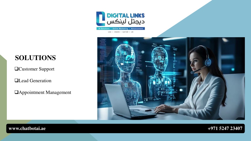 3. SOLUTIONS Customer Support Lead Generation Appointment Management www.chatbotai.ae +971 5247 23407