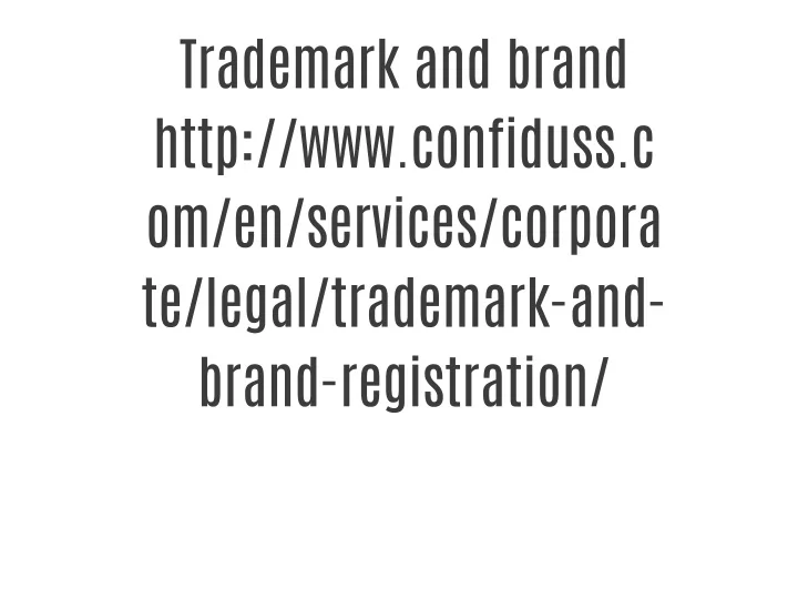 In the framework of the EU's intellectual property, a trademark is a sign that identifies a company. It allows to distinguish one brand from another, or, more specifically, to distinguish the products or services of a company from the products and services of another company.<br><br>In fact, any distinguishing sign can be considered the trademark: it can be a word, a design, a logo and even a particular shape, color or a sound. In particular, a registered trademark is a sign considered by law as worthy of legal protection and property right. Any sign that can characterize the company, can be registered, becoming the companyu2019s trademark. For this reason, a trademark is a legal concept that is different from a brand, which is frequently used in marketing studies. It is possible to say that a brand is what you protect when you want to register a trademark. Every consumer, who knows a company - has an idea about its products and services as well as a general idea about the company as such. This idea is the brand.<br>http://www.confiduss.com/en/services/corporate/legal/trademark-and-brand-registration/