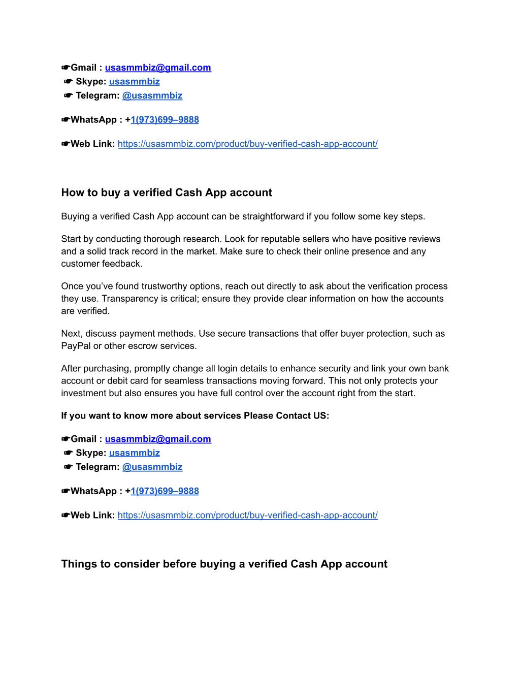 ☛Gmail : usasmmbiz@gmail.com ☛ Skype: usasmmbiz ☛ Telegram: @usasmmbiz ☛WhatsApp : +1(973)699–9888 ☛Web Link: https://usasmmbiz.com/product/buy-verified-cash-app-account/ How to buy a verified Cash App account Buying a verified Cash App account can be straightforward if you follow some key steps. Start by conducting thorough research. Look for reputable sellers who have positive reviews and a solid track record in the market. Make sure to check their online presence and any customer feedback. Once you’ve found trustworthy options, reach out directly to ask about the verification process they use. Transparency is critical; ensure they provide clear information on how the accounts are verified. Next, discuss payment methods. Use secure transactions that offer buyer protection, such as PayPal or other escrow services. After purchasing, promptly change all login details to enhance security and link your own bank account or debit card for seamless transactions moving forward. This not only protects your investment but also ensures you have full control over the account right from the start. If you want to know more about services Please Contact US: ☛Gmail : usasmmbiz@gmail.com ☛ Skype: usasmmbiz ☛ Telegram: @usasmmbiz ☛WhatsApp : +1(973)699–9888 ☛Web Link: https://usasmmbiz.com/product/buy-verified-cash-app-account/ Things to consider before buying a verified Cash App account