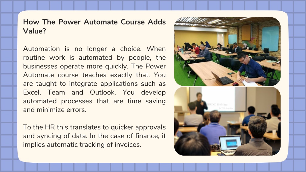 3. So, who really offers the most trusted HRDC course with certification? And why are professionals adding the Power Automate course to their learning list? Let’s break it down. • Why The HRDC Course Matters Today? • Workplaces are changing faster than anyone expected. Automation is creeping into every department. Companies now want people who can adapt quickly. That’s where the HRDC course becomes useful. It equips professionals with practical skills while ensuring the training is HRDC claimable. • For employees, it means learning new tools that make work smarter. For employers, it means developing a capable team without wasting training budgets. When you add a Power Automate course into the mix, you learn how to save hours every week by automating repetitive tasks.