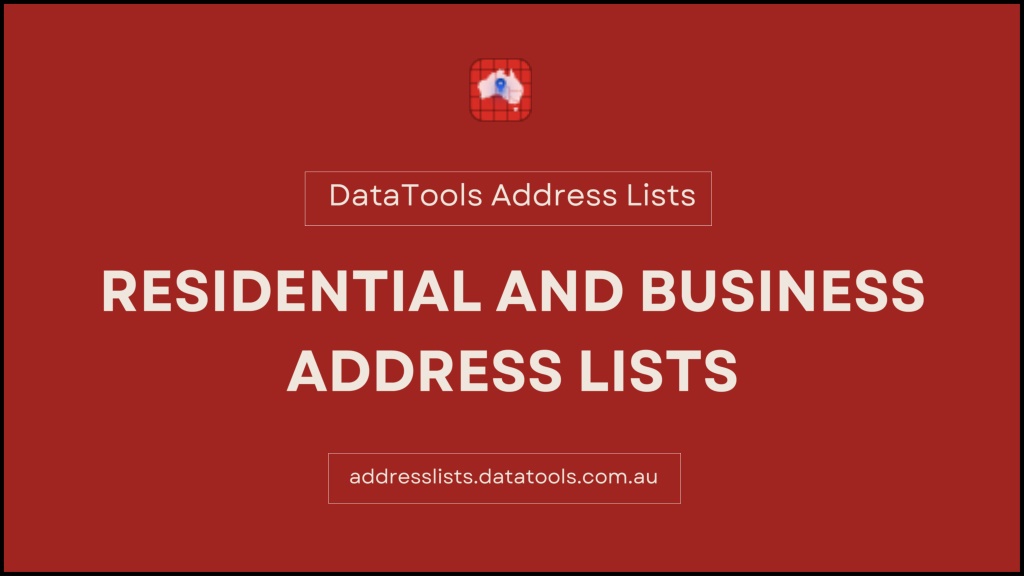 2. ABOUT US Get accurate Residential and Business Address Lists to power your marketing campaigns. Our verified Australian database helps you reach homes and businesses effectively, ensuring better targeting, improved delivery, and higher engagement for your marketing and communication strategies.