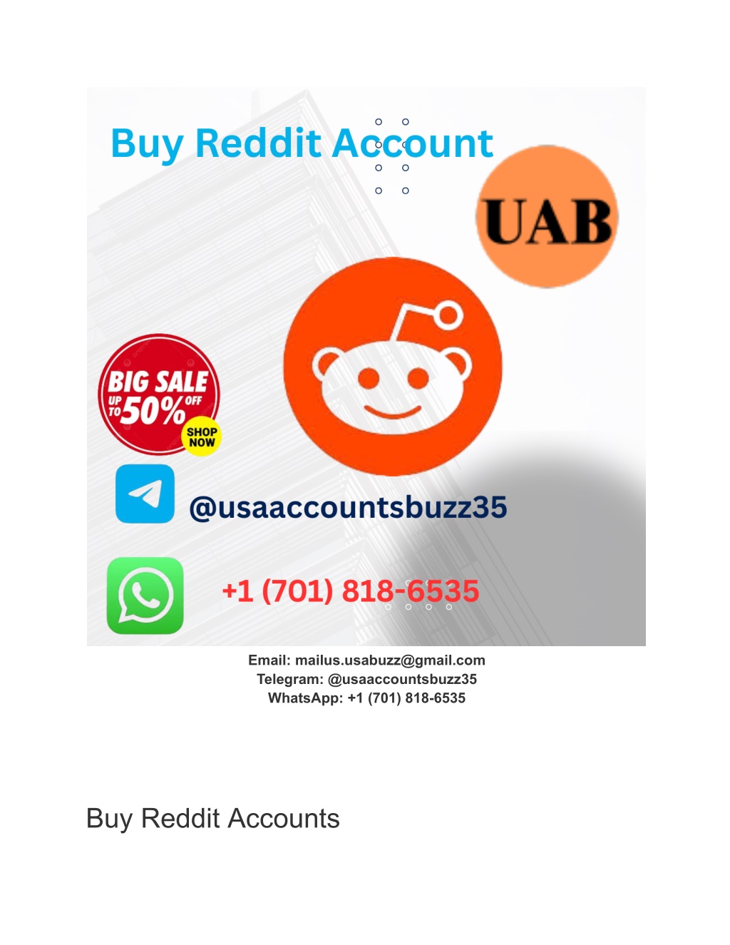 Buy Reddit Accounts<br>In todayu2019s fast-paced digital world, time and trust are your biggest assets. Building a Reddit account from scratch can be slow, uncertain, and frustrating but when you buy Reddit accounts from usaaccountsbuzz.com, you skip the waiting and step right into influence. Whether youu2019re a business owner<br><br>contact us for 24 hours reply/customer support.<br>Email: mailus.usabuzz@gmail.com<br>Telegram: @usaaccountsbuzz35<br>WhatsApp: 1 (701) 818-6535<br>