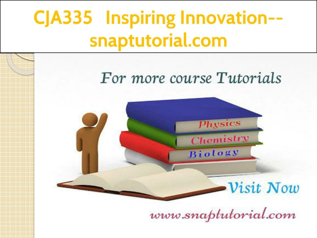 CJA335 Inspiring Innovation--snaptutorial.com CJA 335 All Assignments For more classes visit www.snaptutorial.com CJA 335 Week 1 Assignment Statistical Data Benefits CJA 335 Week 2 Assignment Metro City Survey