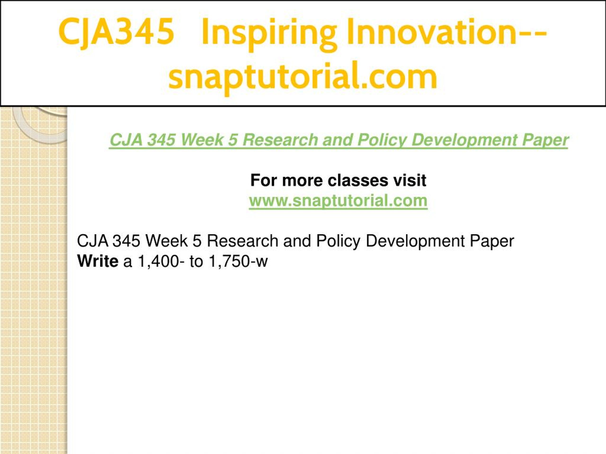 CJA345 Inspiring Innovation--snaptutorial.com CJA 345 Week 5 Research and Policy Development Paper For more classes visit www.snaptutorial.com CJA 345 Week 5 Research and Policy Development Paper Write a 1,400- to 1,750-w