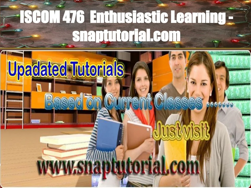 ISCOM 476 Enthusiastic Learning - snaptutorial.com ISCOM 476 Week 5 Executive Presentation For more classes visit www.snaptutorial.com ISCOM 476 Week 5 Executive Presentation