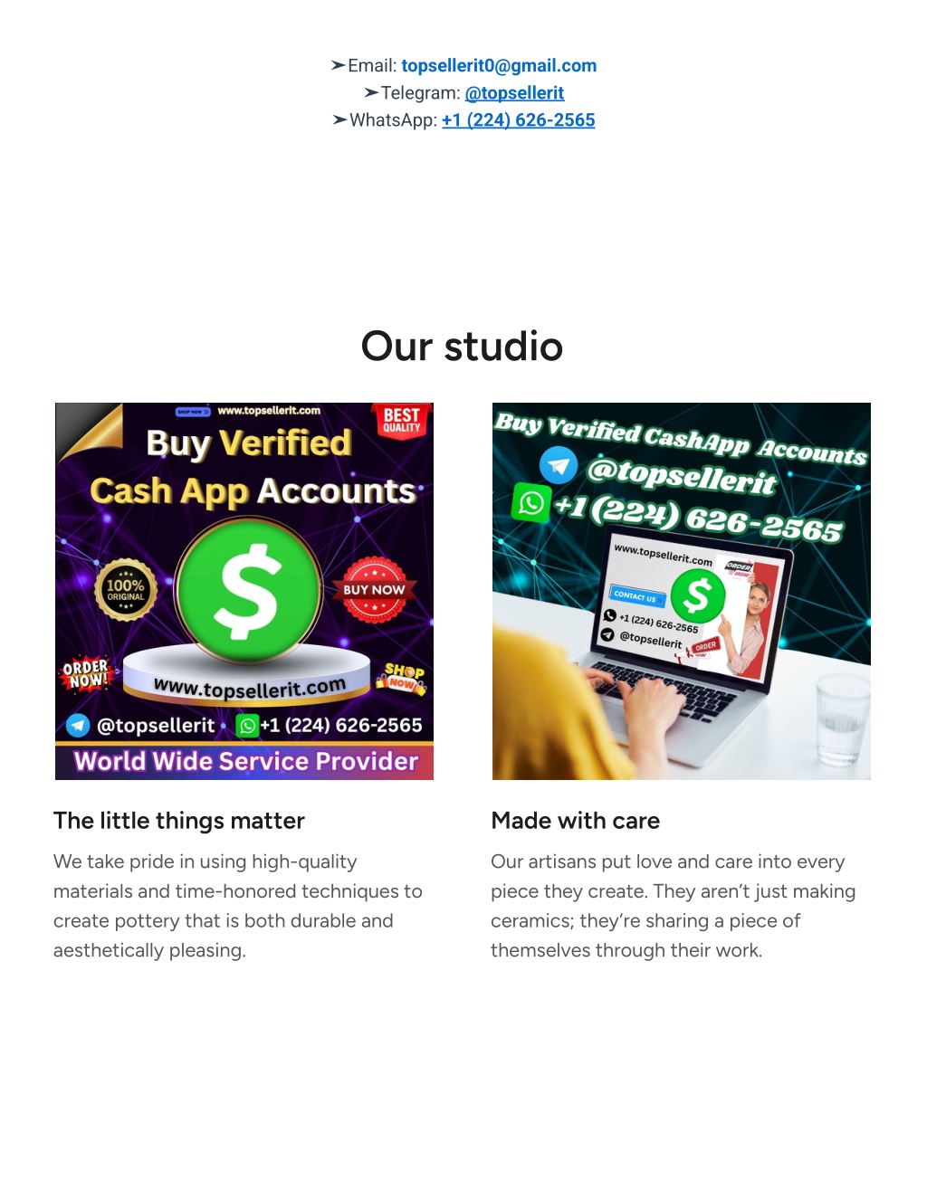 ➤Email: topsellerit0@gmail.com ➤Telegram: @topsellerit ➤WhatsApp: +1 (224) 626-2565 Our studio The little things matter Made with care We take pride in using high-quality materials and time-honored techniques to create pottery that is both durable and aesthetically pleasing. Our artisans put love and care into every piece they create. They aren’t just making ceramics; they’re sharing a piece of themselves through their work.