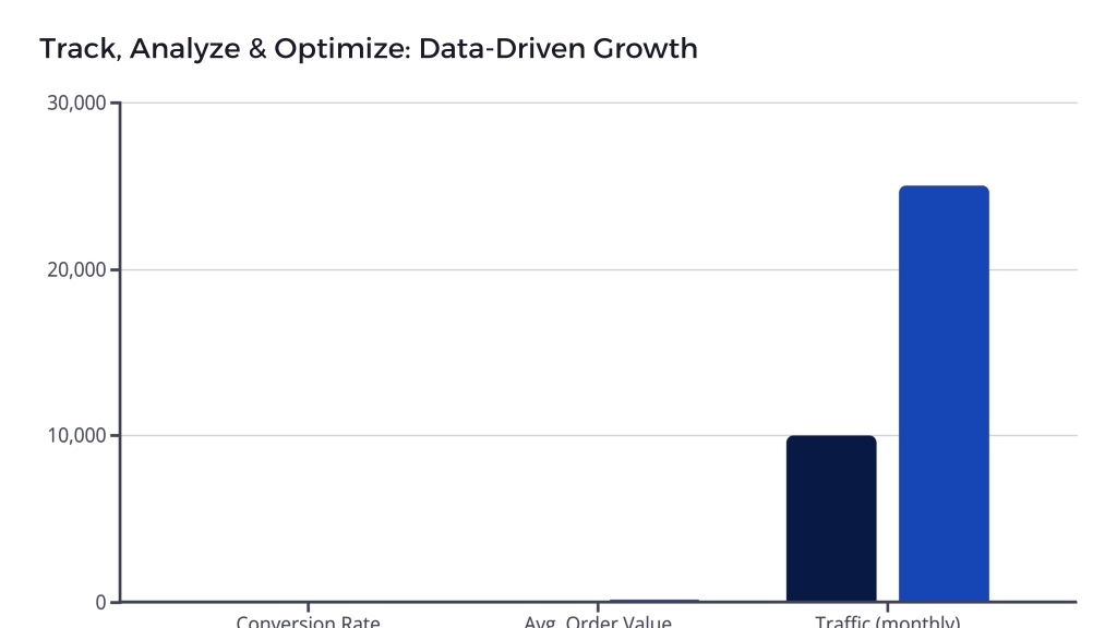 Track, Analyze & Optimize: Data-Driven Growth Current Target Businesses using analytics grow sales 5x more likely. Monitor KPIs weekly, conduct monthly A/B tests on website elements and ad creatives, and utilize heatmaps for UX improvements.