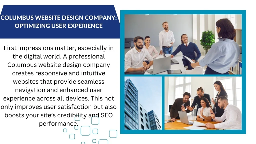 COLUMBUS WEBSITE DESIGN COMPANY: OPTIMIZING USER EXPERIENCE First impressions matter, especially in the digital world. A professional Columbus website design company creates responsive and intuitive websites that provide seamless navigation and enhanced user experience across all devices. This not only improves user satisfaction but also boosts your site’s credibility and SEO performance.