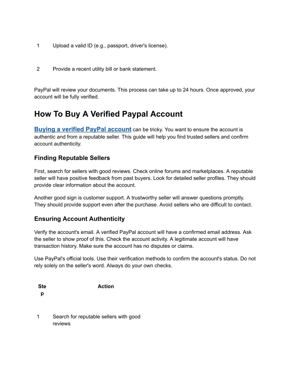1 Upload a valid ID (e.g., passport, driver's license). 2 Provide a recent utility bill or bank statement. PayPal will review your documents. This process can take up to 24 hours. Once approved, your account will be fully verified. How To Buy A Verified Paypal Account Buying a verified PayPal account can be tricky. You want to ensure the account is authentic and from a reputable seller. This guide will help you find trusted sellers and confirm account authenticity. Finding Reputable Sellers First, search for sellers with good reviews. Check online forums and marketplaces. A reputable seller will have positive feedback from past buyers. Look for detailed seller profiles. They should provide clear information about the account. Another good sign is customer support. A trustworthy seller will answer questions promptly. They should provide support even after the purchase. Avoid sellers who are difficult to contact. Ensuring Account Authenticity Verify the account's email. A verified PayPal account will have a confirmed email address. Ask the seller to show proof of this. Check the account activity. A legitimate account will have transaction history. Make sure the account has no disputes or claims. Use PayPal's official tools. Use their verification methods to confirm the account's status. Do not rely solely on the seller's word. Always do your own checks. Ste p Action 1 Search for reputable sellers with good reviews