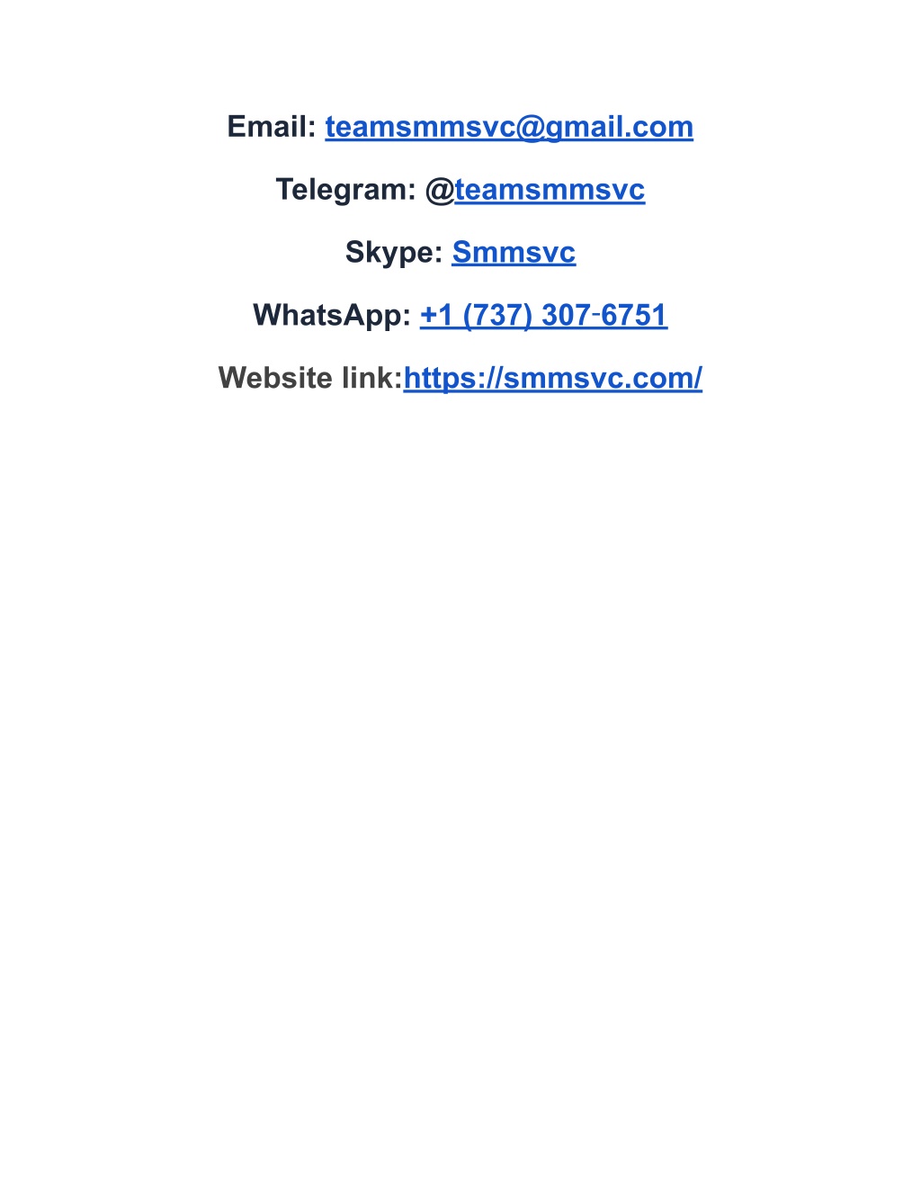 5. Email: teamsmmsvc@gmail.com Telegram: @teamsmmsvc Skype: Smmsvc WhatsApp: +1 (737) 307‑6751 Website link:https://smmsvc.com/