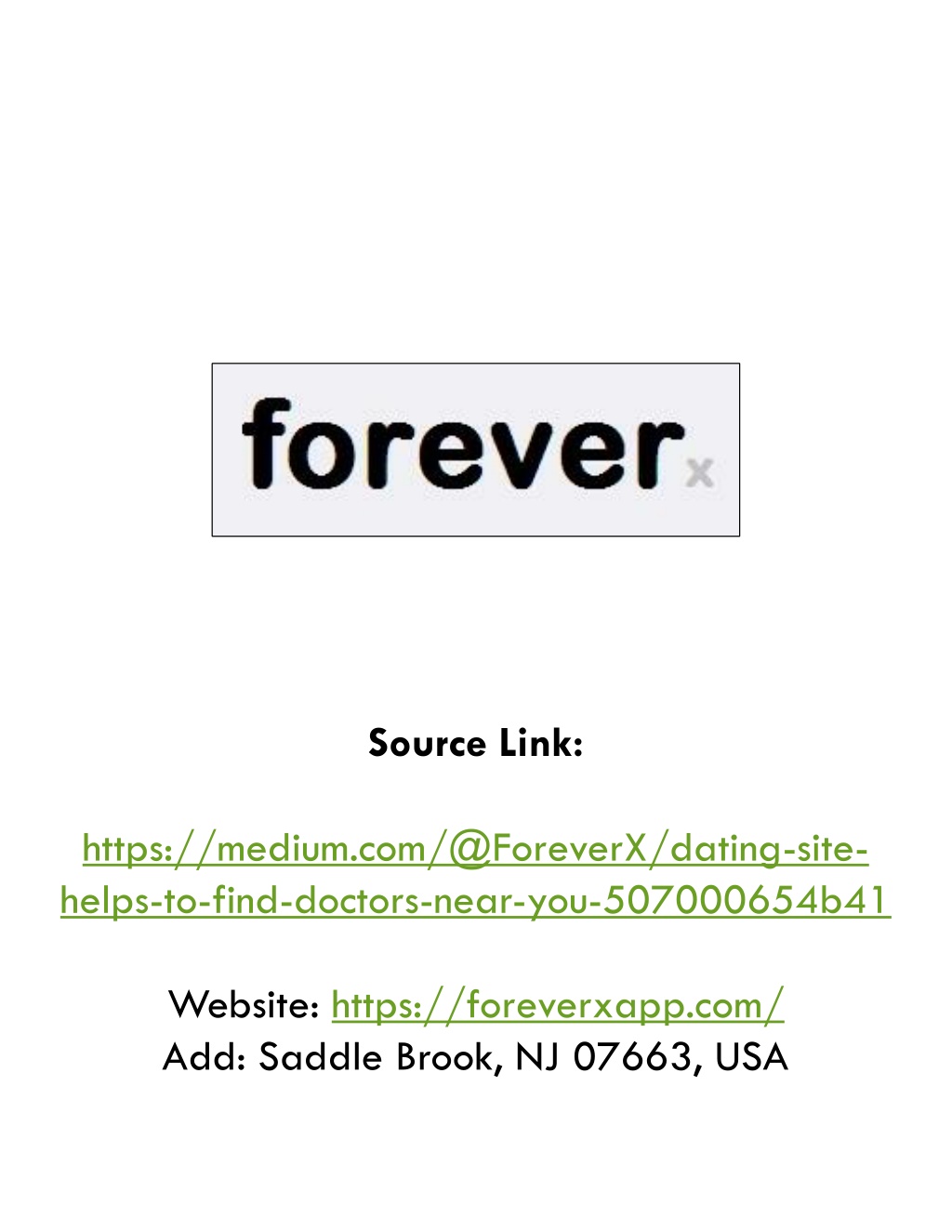 Source Link: https://medium.com/@ForeverX/dating-site-helps-to-find-doctors-near-you-507000654b41 Website: https://foreverxapp.com/ Add: Saddle Brook, NJ 07663, USA