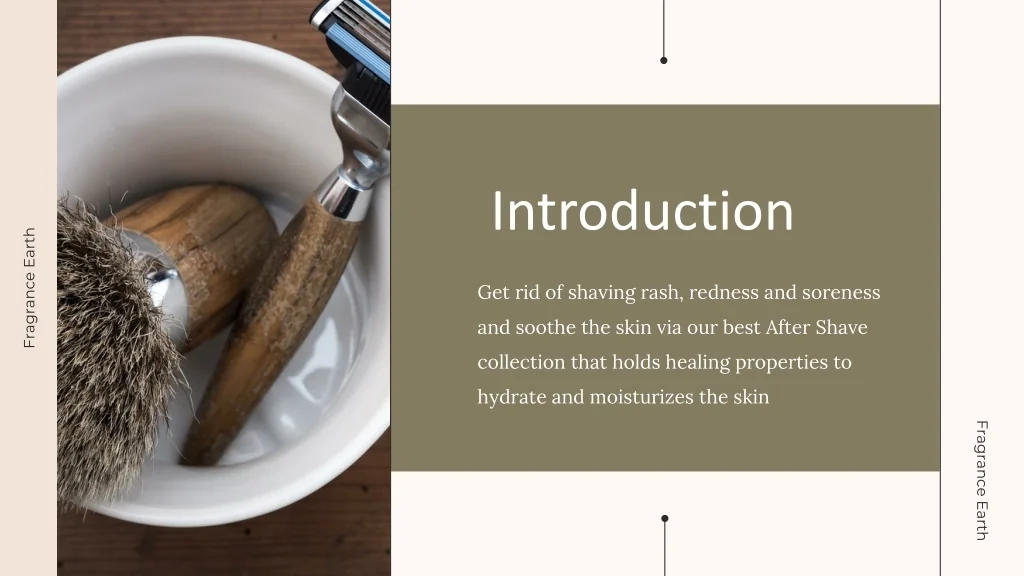 Introduction Get rid of shaving rash, redness and soreness and soothe the skin via our best After Shave collection that holds healing properties to hydrate and moisturizes the skin Fragrance Earth Fragrance Earth