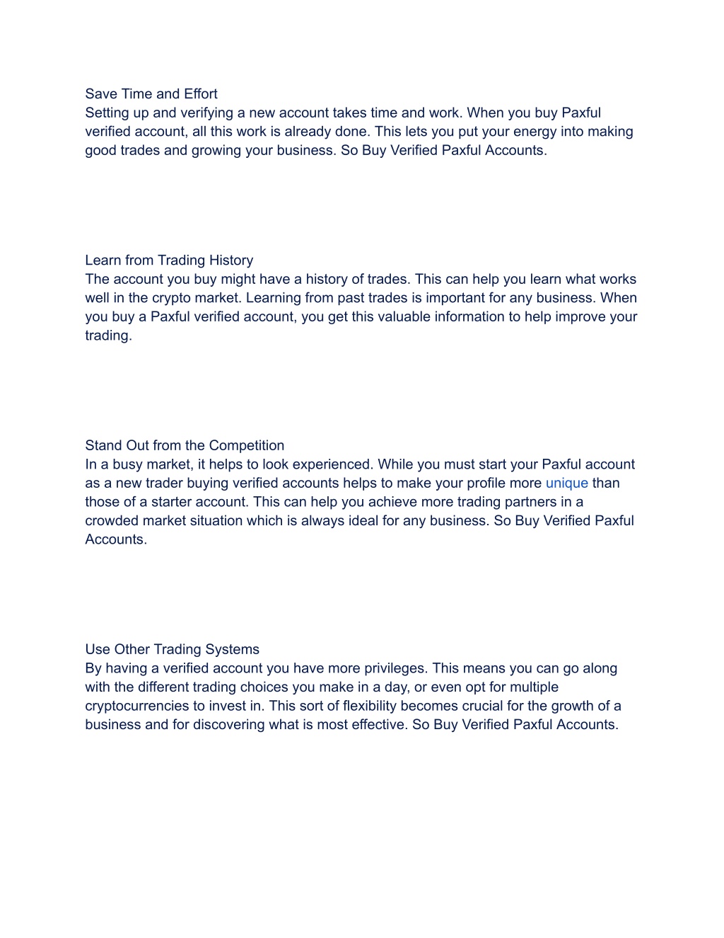 Save Time and Effort Setting up and verifying a new account takes time and work. When you buy Paxful verified account, all this work is already done. This lets you put your energy into making good trades and growing your business. So Buy Verified Paxful Accounts. Learn from Trading History The account you buy might have a history of trades. This can help you learn what works well in the crypto market. Learning from past trades is important for any business. When you buy a Paxful verified account, you get this valuable information to help improve your trading. Stand Out from the Competition In a busy market, it helps to look experienced. While you must start your Paxful account as a new trader buying verified accounts helps to make your profile more unique than those of a starter account. This can help you achieve more trading partners in a crowded market situation which is always ideal for any business. So Buy Verified Paxful Accounts. Use Other Trading Systems By having a verified account you have more privileges. This means you can go along with the different trading choices you make in a day, or even opt for multiple cryptocurrencies to invest in. This sort of flexibility becomes crucial for the growth of a business and for discovering what is most effective. So Buy Verified Paxful Accounts.