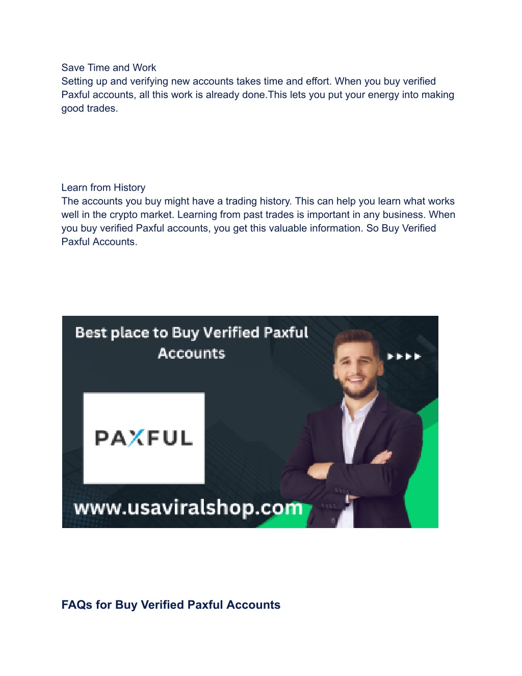 Buy Verified Paxful Accounts2024.pdf usa <br>Are you looking to start or grow your online business in cryptocurrency trading? You might want to think about buying verified Paxful accounts. This can be a smart move for many reasons. Itu2019s an investment in your business future. It is your business insurance for the future. Forexowners who look for an effective strategy in the trading of cryptocurrencies on the internet will need to think about the availability<br><br> usaviralshop40@gmail.com<br>Telegram: @usaviralshop<br>Skype: usaviralshop<br>WhatsApp: 1 u202a(862) 413-0638u202c